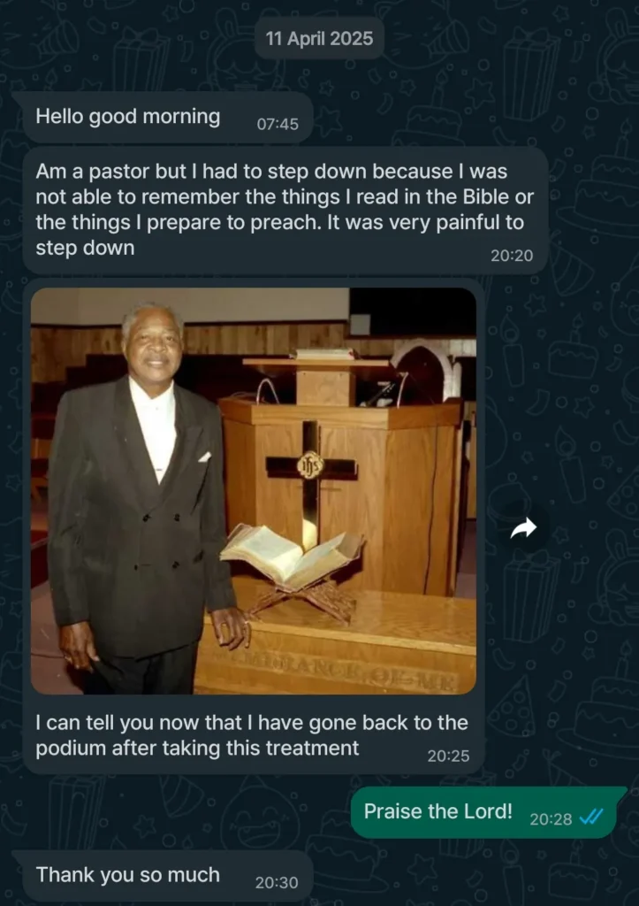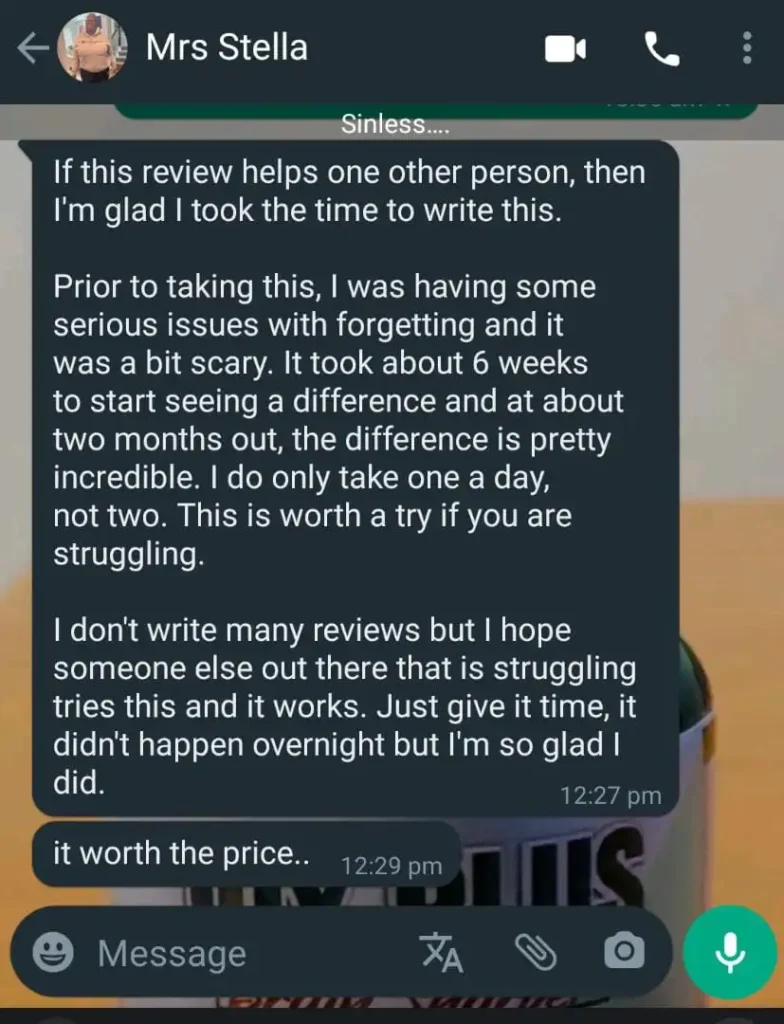 My name is Samuel, father of 3 and an office worker here in Nigeria. For months, my memory was failing me — forgetting simple things, struggling to stay focused, and even mixing up important work details.